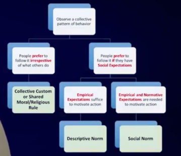 - we also follow the rule because we believe other people (in our reference network) think we should follow the rule - the presence of a social norm is also associated a normative expectation.